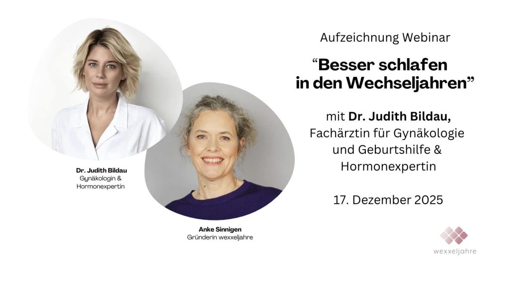 Dr. Judith Bildau, Fachärztin für Gynäkologie und Geburtshilfe & Hormonexpertin, hat in unserem Webinar die Hintergründe für Schlafstörungen in den Wechseljahren erklärt, verschiedene Therpaiemöglichkeiten aufgezeigt und viele Fragen der Teilnehmerinnen beantwortet.